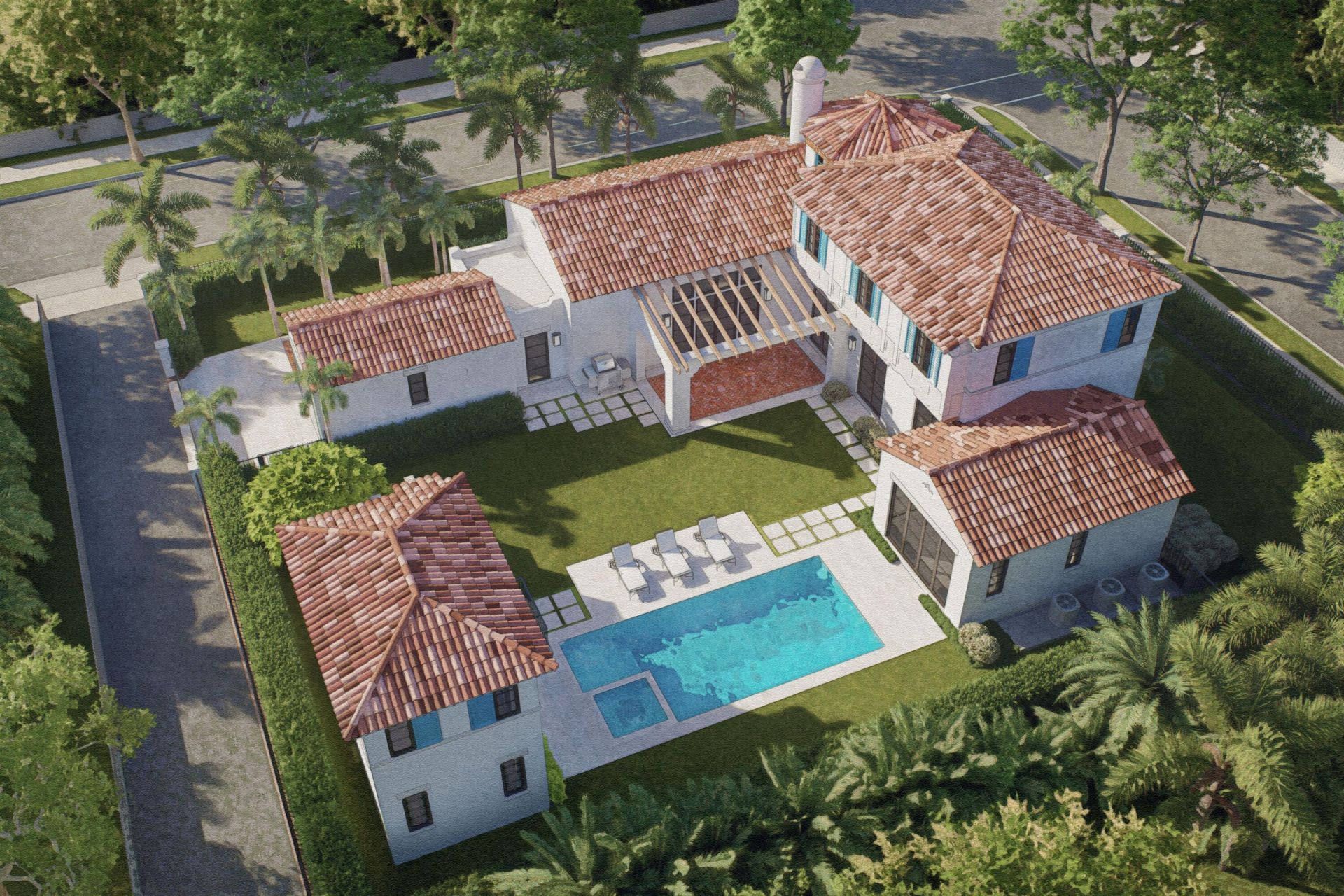 Crafted by award-winning architect Roger Janssen and built by Beno Janssen III, this exquisite pre-construction residence, anticipated for completion Fall 2027, will stand as a rare architectural masterpiece in the heart of West Palm Beach's Old Northwood Historic District-at the prime corner of Spruce Avenue and 35th Street. Honoring the timeless Mediterranean Revival legacy of iconic architects John Volk and Gustav Maass, it blends elegant stucco facades, classic barrel-tile roofing, and arche...Crafted by award-winning architect Roger Janssen and built by Beno Janssen III, this exquisite pre-construction residence, anticipated for completion Fall 2027, will stand as a rare architectural masterpiece in the heart of West Palm Beach's Old Northwood Historic District-at the prime corner of Spruce Avenue and 35th Street. Honoring the timeless Mediterranean Revival legacy of iconic architects John Volk and Gustav Maass, it blends elegant stucco facades, classic barrel-tile roofing, and arched entryways with refined Santa Barbara Modern interiors: clean lines, open-concept flow, vaulted ceilings, a dramatic circular staircase, star hall, and striking fireplace. Spanning 4,104 SF under air on this estate-sized 12,000 SF double lot with two separate addresses-a truly rare feature -, this property includes a 3BR/3.5BA main residence (3,552 SF A/C including 275 SF garage) and a detached 2BR/2BA guest quarters (552 SF), totaling 5 bedrooms and 5.5 baths. Enjoy the 15x30 ft heated pool, spa, lush landscaping, driveway, and optional carport. Old Northwood enchants with quiet, mature tree-lined streets and sidewalks. It features an exceptional collection of Florida Land Boom-era homes, preserved by the West Palm Beach Historic Preservation Board amid a vibrant revival driven by nearby multi-billion-dollar projects, to include the nearby Currie Park. Priced at $4,850,000-including a $150,000 allowance for minor customizations-this pre-construction opportunity delivers exceptional value at under $1,200/SF under air in one of South Florida's most promising historic-luxury enclaves. Note: Currently vacant fenced land with 8' closed-in berm, city-approved plans, double open permit for each address, 505 35th St and 3611 Spruce Ave; minor code enforcement lien pending resolution (lot maintenance during permitting, estimated <$17,000). Full disclosures available.